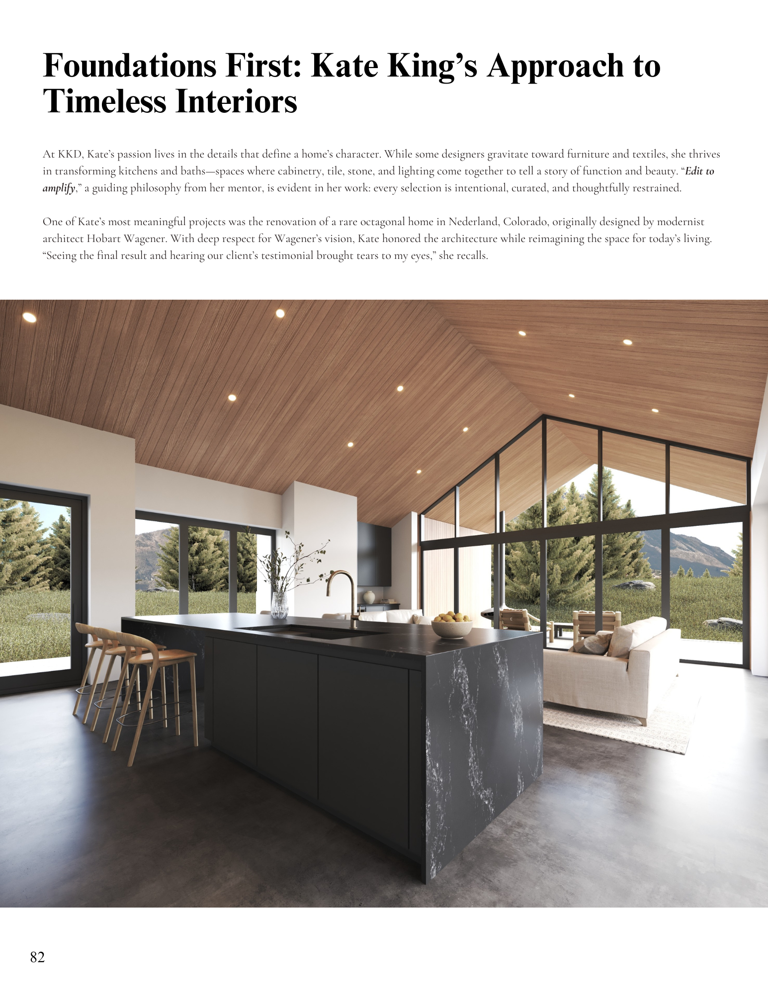 For my first full home remodel, I had the opportunity to renovate a unique octagon house in Nederland originally built by prominent modernist architect Hobart Wagener. It was incredibly rewarding to bring my own design perspective to the space while honoring Wagener’s original architecture and meeting our clients’ needs.